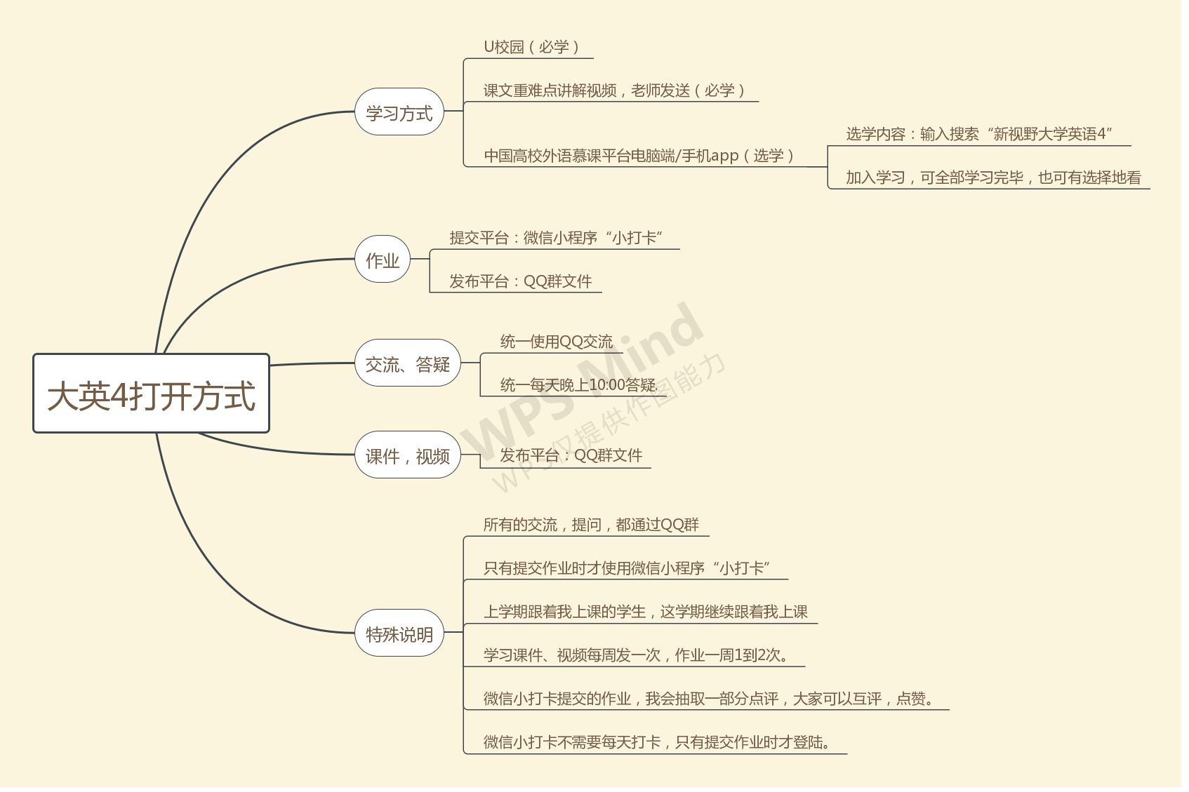 开课前两周以本门课程线上教学群为单位,讨论在线教学模式、教学计划、课程说明、考核标准等。经过讨论与比较,确定了以录播+U校园学习为主,辅以慕课资源自学、QQ群讨论答疑、作业微信小打卡等形式。开课前一周,在班级QQ群公告了线上线下混合教学新模式,并制作了思维导图将课程说明、学习流程通过QQ群发送给学生,与此同时,还将教材电子版、精选慕课等教学资源提前分享给学生,用于学生线下课前预习以及课后温习课程内容。开学前三天,与班委对接,组建微信小打卡群,方便提交作业,形成老师点评,生生互评的模式。
