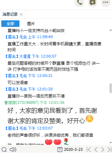 3.课后一方面与学生及时沟通,让他们就老师教学提出意见,另一方面与教研室其他老师进行线上教学经验交流,不断改进教学模式、提升教学方法。