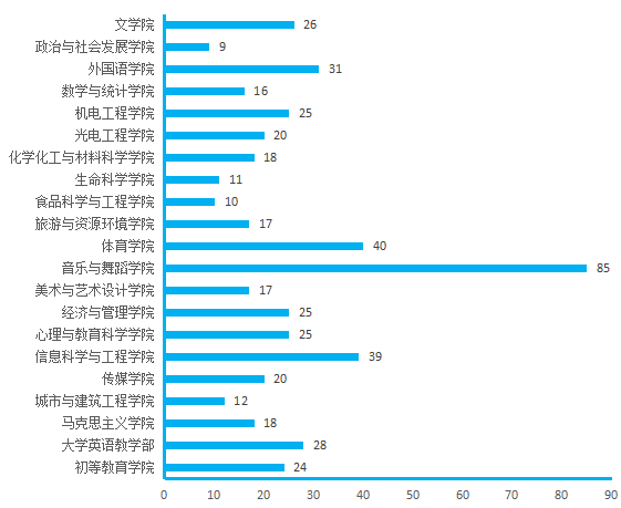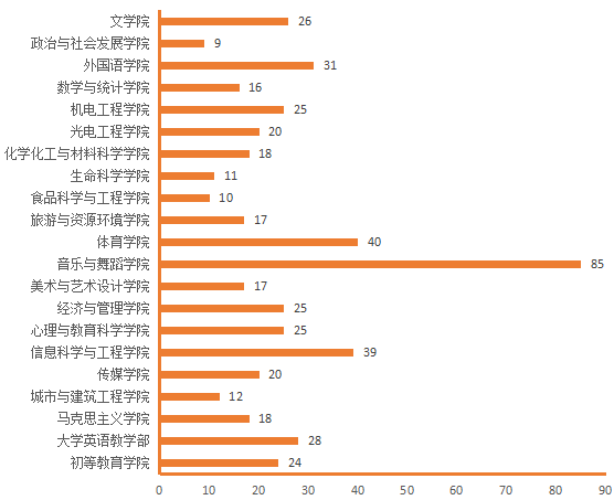 图4. 各院(部)4月1日线上授课教师数(人次)分布图