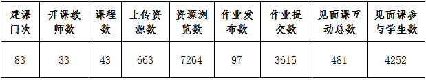 一周来,线上教学课程1097门、3100门次,参与授课教师813人,涉及教学班级周和2208个,学生上线学习163333人次,累计上线学习学生人次占应上线学习人次比例为99.34%。