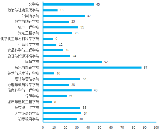 图4. 各院(部)3月27日线上授课教师数(人次)分布图