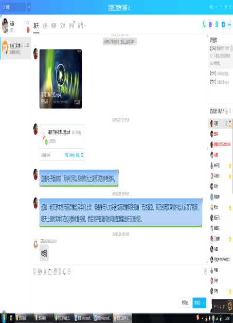 为了掌握学生的上课出勤情况,上课前10分钟在QQ群让学生接龙式签到,统计出勤率。上课时把制作好的视频分享到QQ群,在学生开始学习前,在QQ群发布几个与学习内容相关的思考题,让学生带着问题去学习,以培养学生自主学习、发现问题及解决问题的能力。