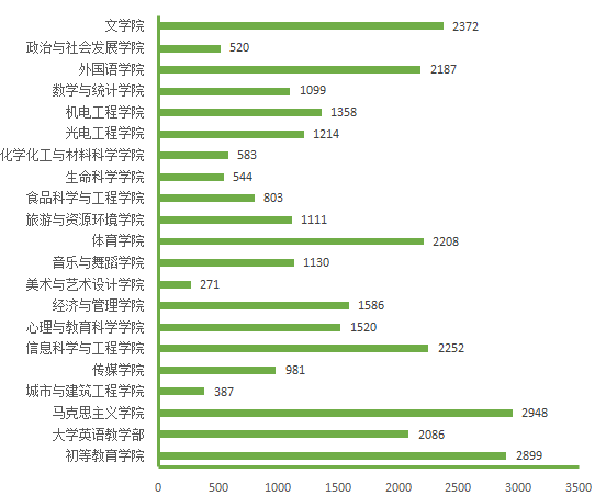 图5. 各院(部)3月27日线上授课学生数(人次)分布图