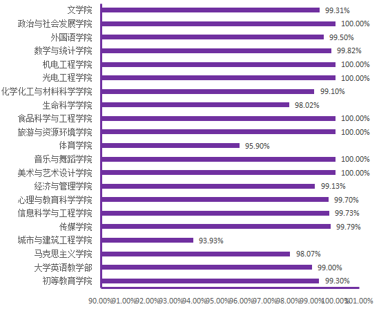图6. 各院(部)3月27日线上学生上课率分布图