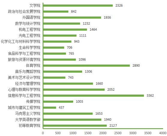 图5. 各院(部)3月26日线上授课学生数(人次)分布图