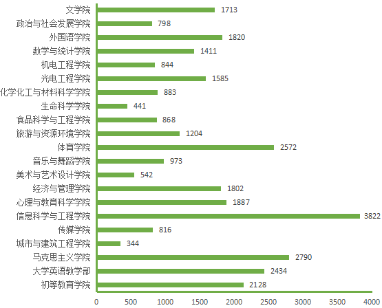 图5. 各院(部)3月23日线上授课学生数(人次)分布图