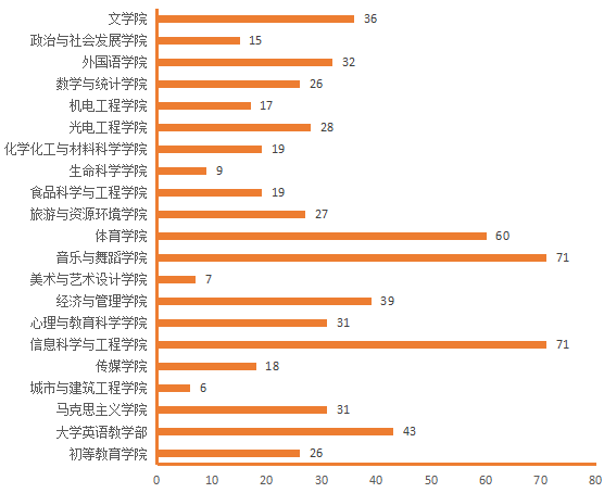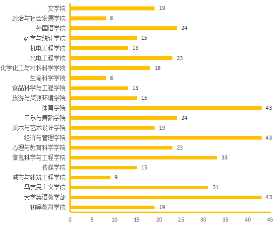 图4.各院(部)3月23日线上授课教师数(人次)分布图