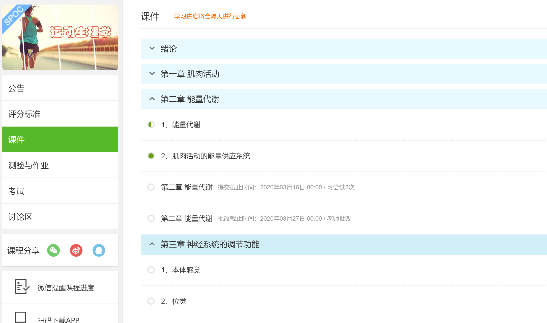 在学校提供的丰富的线上教学资源中,选择了中国大学慕课平台,依托江西师范大学黄文英教授的《运动生理学》创建了异步SPOC。借助优秀的线上资源,同时结合本人的微课教学视频补充构建了生理学课程中的主干章节,按照既定的教学进度按时发布视频、测试、作业,让学生循序渐进的学习,确保课程的完整性。同时,利用慕课堂学生可以在这个虚拟的线下课堂中学习、签到、交流等,也通过慕课堂与学生交流互动,了解到学生在家学习的情况。