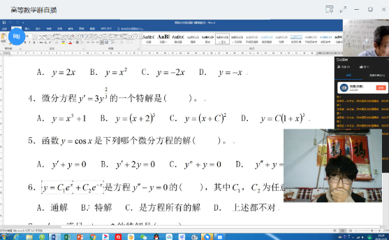 《高等数学》是理工科基础理论课,定义定理以及公式推导多,内容比较枯燥,采用线上教学难度系数大。如果一味将知识讲解用于PPT播放,高等数学很难达到效果。如果让学生像在课堂一样跟随老师的思维进行推理,板书是重要的一环。为此,许太安老师专门购置了一块白板,上课时定义、定理的推导也与教室内上课一样进行推导及板演,目的在于准确表达出知识间的逻辑关系,在掌握基本知识的前提下,突出章节的重点和难点,将较为枯燥的理论知识在网络直播课堂上与同学进行互动。