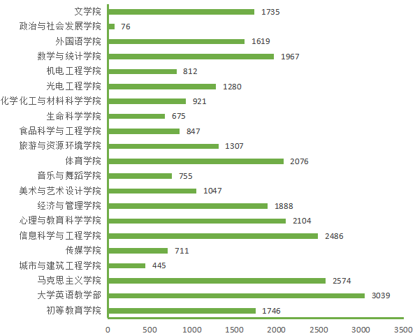 图5. 各院(部)3月10日线上授课学生数(人次)分布图