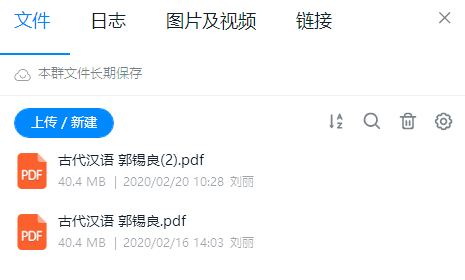 2.将电子版《古代汉语》传至班级群,让学生下载,以备接下来在线直播课的学习。