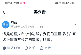 2.疫情特殊时期,在线直播教学最大限度地实现了师生实时互动。授课过程中将ppt截图发送到班级群,弥补了教具缺乏的遗憾,便于学生学习;还可以及时了解学生的听课效果,对于学生没听明白的地方及时补充讲解。