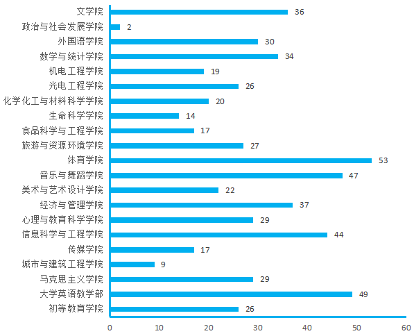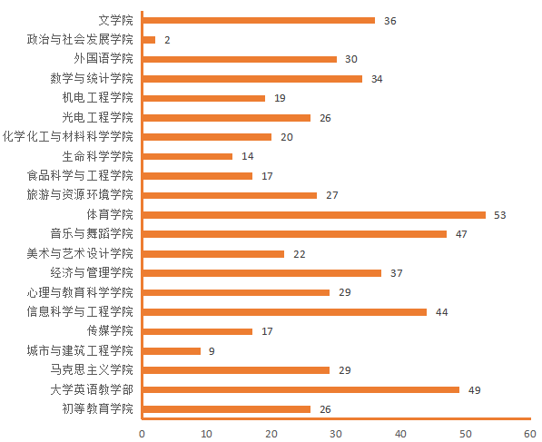 图4.各院(部)3月10日线上授课教师数(人次)分布图