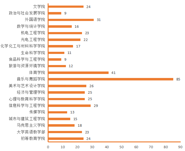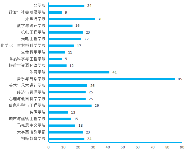 图4. 各院(部)3月11日线上授课教师数(人次)分布图