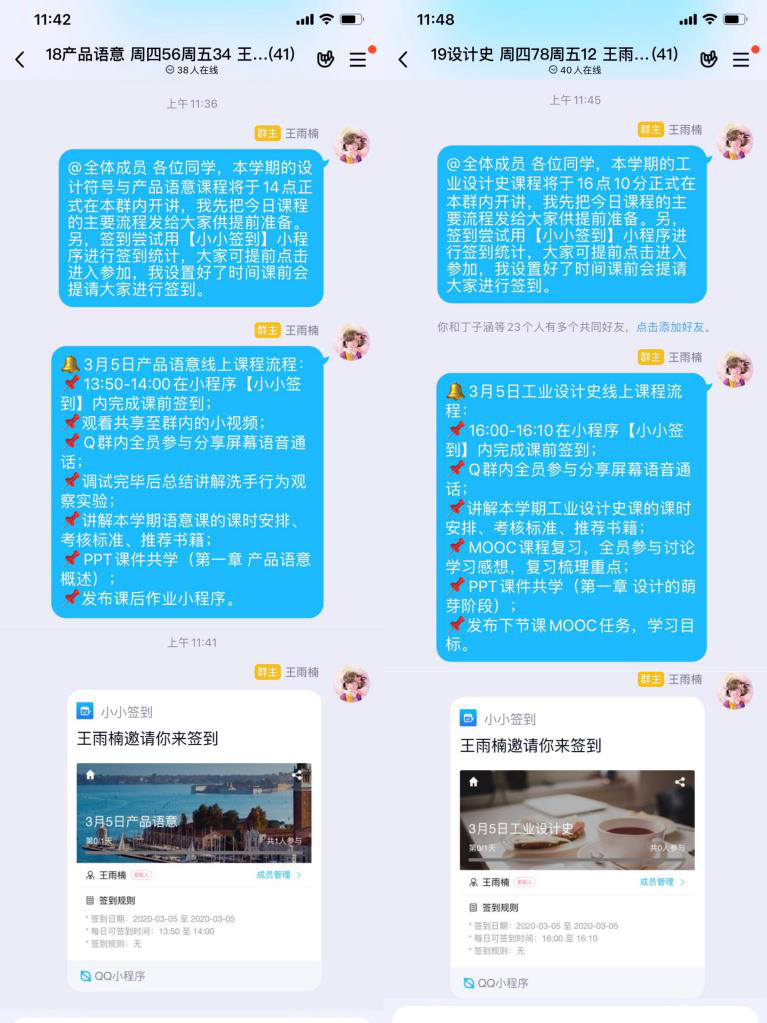 为深入贯彻教育部和省教育厅疫情防控期间“停课不停教、停课不停学”的号召,保障线上教学质量,机电工程学院王雨楠老师积极参加了在线教学培训。按照教学安排,王老师本学期教授机电工程学院18级3D仿真1班及19级3D仿真1班《设计符号与产品语义》和《工业设计史》课程,在备课时她充分考虑到学情、专业特性、课程特点、师生互动基础等因素,并采用QQ群作为线上教学的主要工具。具体做法如下: