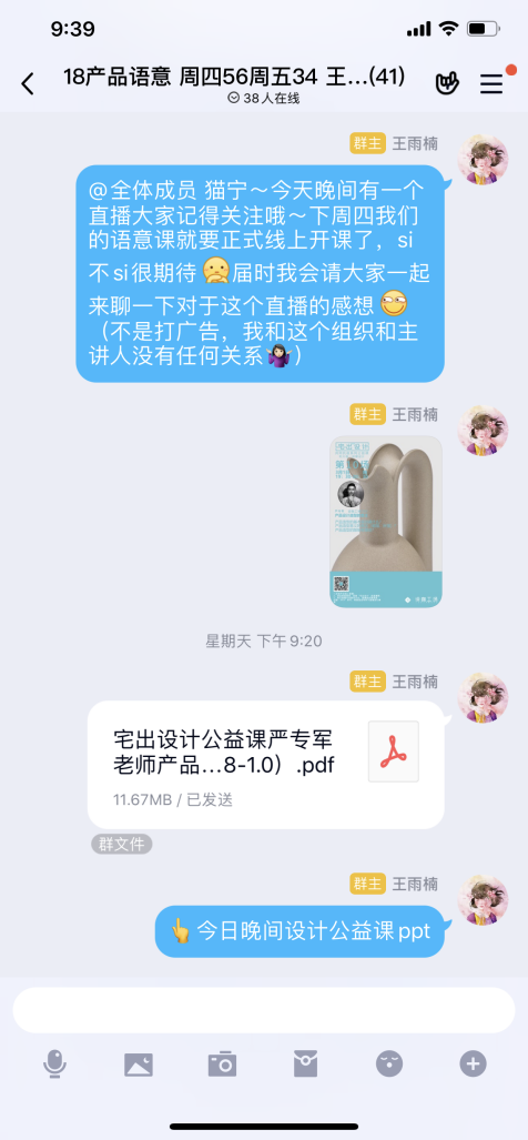 为保证线上教学效果,非课程日也须持续保持QQ群内良好的互动氛围,于是王老师平时积极引入各种设计相关话题,如视频、案例、文章等引导大家参与讨论。同时,课前做好 “三步走”策略: