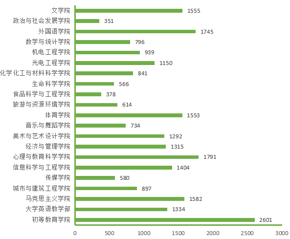 图5. 各院(部)3月11日线上授课学生数(人次)分布图