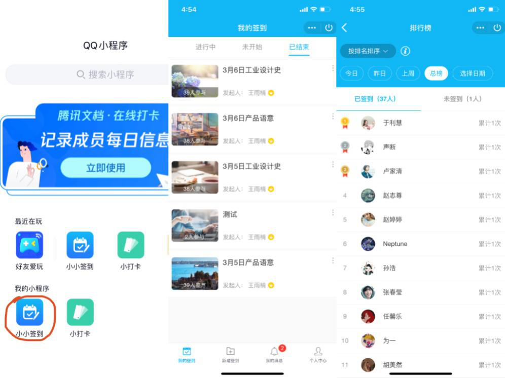 图5:利用QQ内【小小签到】小程序进行课前签到