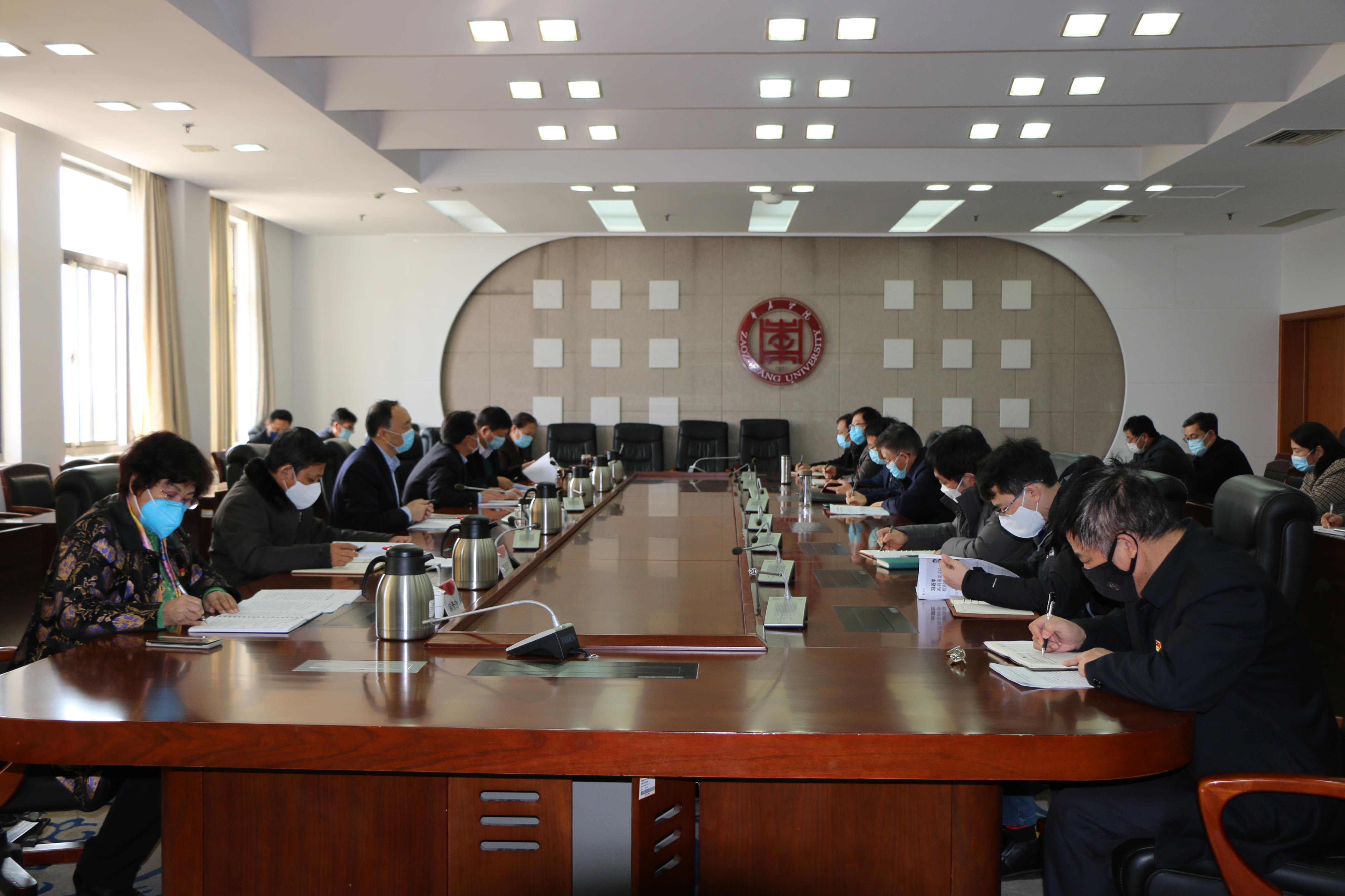 曹胜强强调,学校在全力做好疫情防控工作的同时,要抓好年度工作任务的落实,继续统筹好疫情防控和学校事业发展的“两促进、两提高”任务,做到“抓防控、谋发展,两不误、两提高”,全力抓好各项重点任务。各项工作要全面到位、强化责任落实。各部门要在分管校领导指导下,针对2020年的工作要点,继续梳理当前政策、吃透上级精神、打通发展瓶颈。由于疫情发展,在科研以及其它方面很多政策发生了变化,各部门一定要吃透上级精神,统筹推进、逐项落实各项工作。