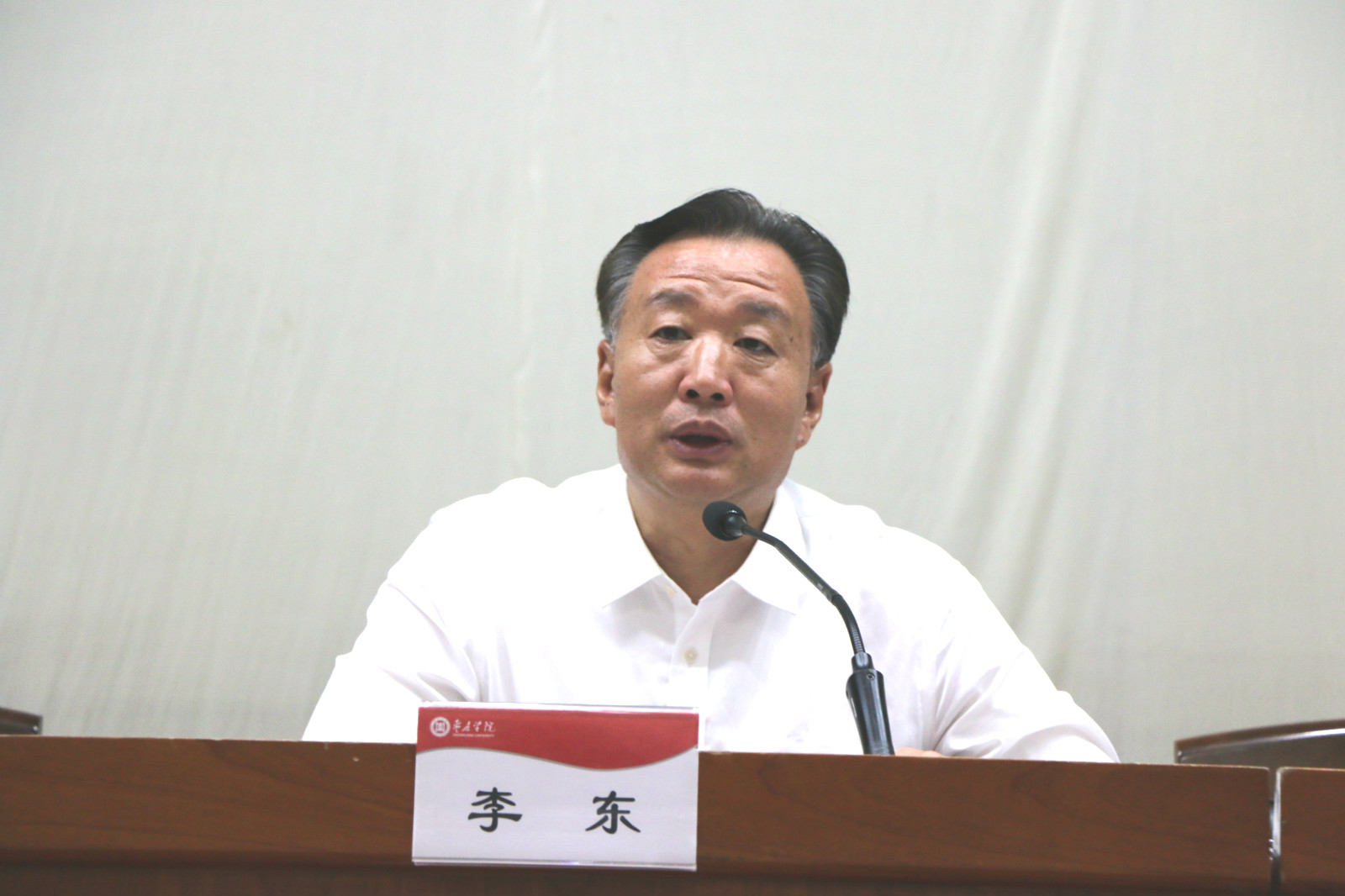 李东简要回顾了学校迎评促建工作,对全校广大师生员工胸怀大局,放弃暑假等休息时间,在评估一线做的大量工作表示感谢。针对贯彻落实本次会议精神,李东要求,一要进一步动员发动,开好全体教工大会和全体学生大会,全面贯彻落实学校党委迎评工作各项要求,以最好的精神状态投入到迎评工作中;二要进一步查漏补缺,对照评估指标体系和预评估专家意见进一步梳理存在的问题,突出工作重点,以最高标准、最高质量、最高水平迎接专家检验;三要进一步细化方案,在学校迎评工作方案的基础上进一步细化,制定专项工作方案,全力以赴做好工作落实;四要进一步强化统筹协调,主动配合、相互协调,做到有条不紊、忙而不乱,高效完成审核评估各项工作任务;五要进一步强化责任,全面强化迎评办、15个工作组和各职能部门、各院部的工作责任,落实好党政负责人是第一责任人的责任以及全体师生员工的迎评责任,做到人人肩上有担子,迎评责任全覆盖,确保学校审核评估工作取得优异成绩。