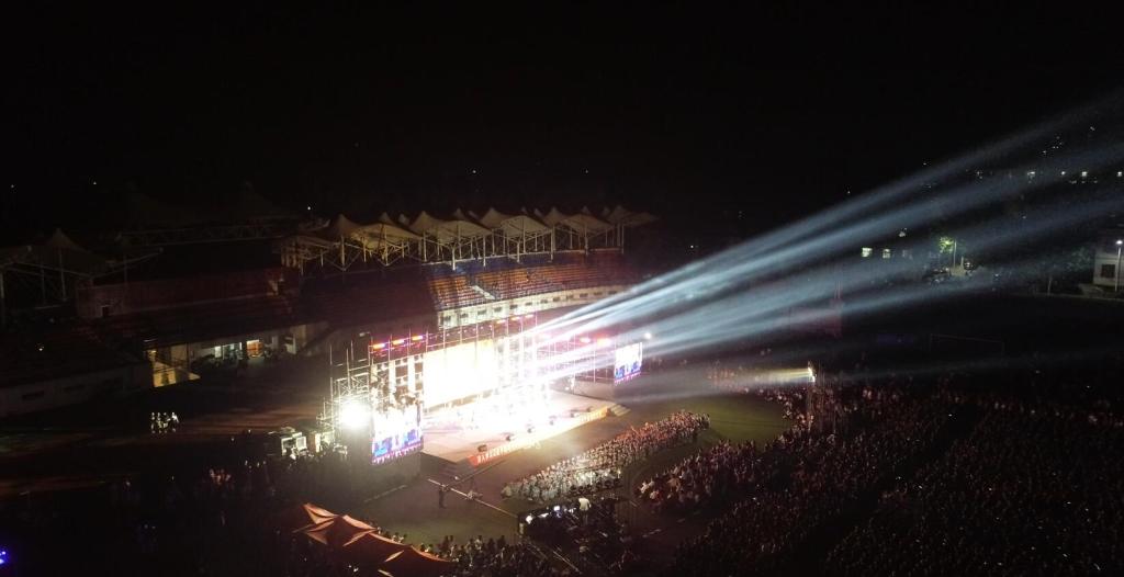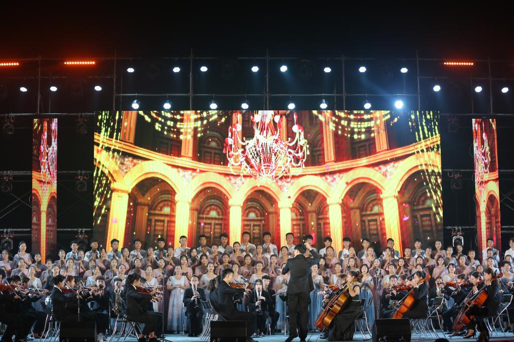 70年风雨兼程,披荆斩棘,成就伟大;新时代放飞梦想,祝福祖国,再创辉煌!9月17日晚,永利总站ylzz55“辉煌七十载 筑梦新时代”庆祝中华人民共和国成立70周年暨2019年迎新生文艺晚会在学校体育场举行,枣院师生用歌声和激情致敬伟大的新时代,向中华人民共和国成立70周年献礼。全省第二批“不忘初心 牢记使命”主题教育省委第二巡回指导组领导、学校党政领导、师生代表及2019级全体新生上万人共同观看了演出。