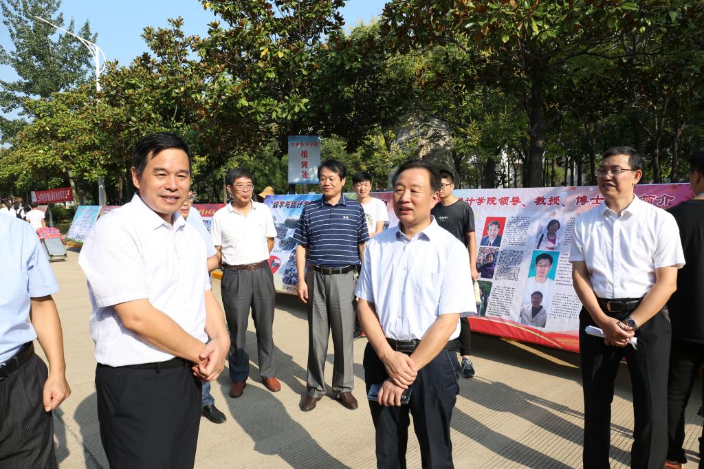 校领导在各学院迎新点一一驻足,与相关工作人员、迎新志愿者、新生及家长沟通交流,详细了解各学院的新生报到人数、住宿安排、学院的迎新特色和服务举措,对迎新师生们的辛勤工作表示感谢。校领导不时地与新生家长亲切交谈,仔细询问新生的籍贯、专业、报到手续等情况。