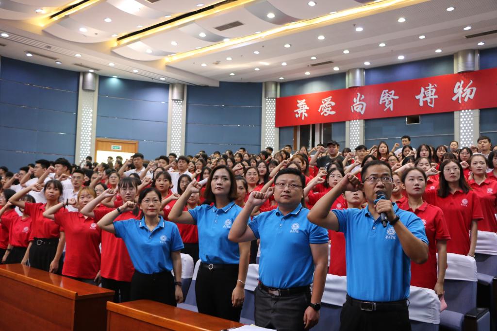 援疆支教团带队教师丁聪代表赴新疆实习支教团教师承诺,一定要增强责任意识,牢记使命重托,尽快适应当地环境,以饱满的精神状态投入到援疆支教工作中。援疆支教团学生张立文代表赴新疆实习支教团全体学生承诺,坚决遵守支教团的各项规章制度,谦虚谨慎,脚踏实地,为共建美丽新疆贡献一份力量。