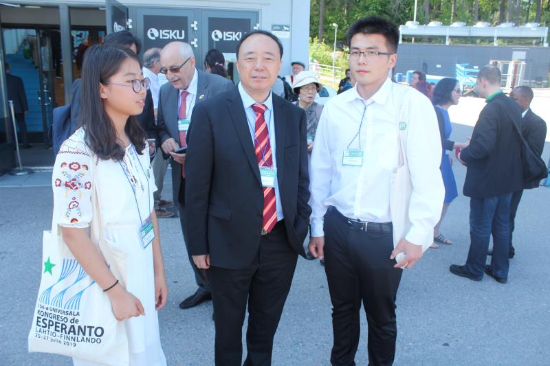 7月21日,第104届国际世界语大会在芬兰拉赫蒂开幕。应国际世界语协会邀请,永利官网党委书记、中华全国世界语协会副会长曹胜强率团出席了本届大会,外国语学院2018级学生李相龙和张悦作为世界语专业优秀学生代表随团参会。大会以“活力自然,多彩文化”(Vivanta naturo, floranta kulturo)为主题,来自57个国家和地区的近900名世界语者围绕生态环境与文化多样性进行交流。