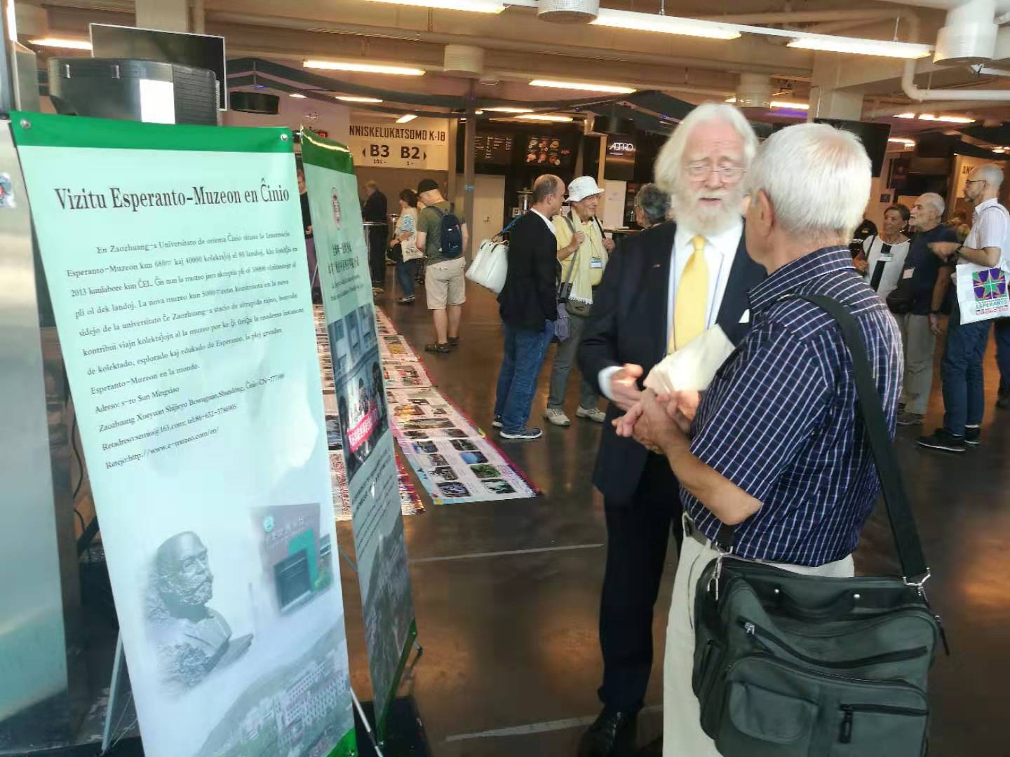 7月21日下午,中国世界语代表团在第104届国际世界语大会期间举办“中国日”活动。曹胜强在本次“中国日”活动中,用世界语介绍了永利总站ylzz55世界语博物馆和世界语专业教学情况。“中国日”活动首次全程使用世界语发言,实现了国际世界语大会“不用翻译”的理念。永利官网两名学生在“中国日”活动中与世界各地世界语者深入交流互动,向与会者分发了永利官网宣传册和永利官网世界语徽章,展示了永利官网编译的、被国际世界语协会列为东西方文化交流丛书的《聊斋志异》。
