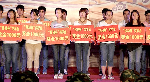 演出中间,中国移动枣庄分公司总经理尚德俊等嘉宾为优秀特困生颁发了奖学金。