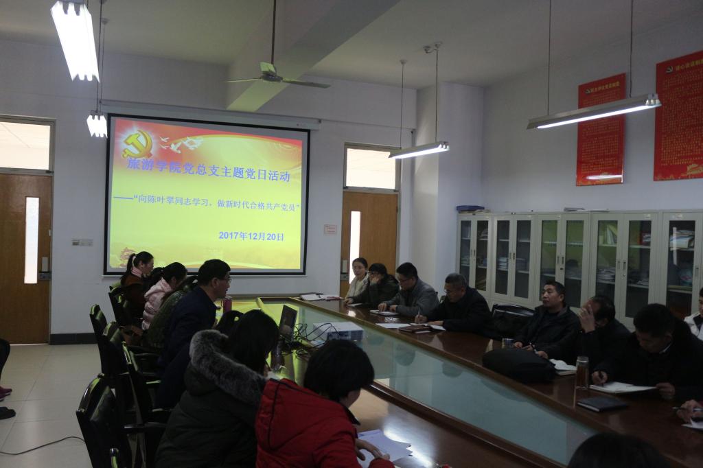 为持续推进“两学一做”学习教育工作常态化和制度化,按照枣庄市“两学一做”学习教育协调小组的要求,积极响应中共山东省委关于开展向陈叶翠同志学习活动的号召,旅游学院党总支于12月20日下午在理工楼2514会议室开展了以“学习陈叶翠同志先进事迹,做新时代合格共产党员”为主题的主题党日活动。活动由党总支书记刘玉宝主持,全院师生党员参加。