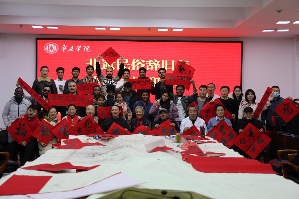 龙年新春将至,为进一步加强对来华留学生中国文化教育,让来华留学生了解和体验中国新春佳节传统文化魅力,切实增强来华留学生对中国发展的理解和认同,近日,永利总站ylzz55联合山东省枣庄市市中区矿区街道在市中校区综合楼3楼会议室共同举办“非遗民俗辞旧年 瑞龙纳福迎新春”活动,体验“中国年味”,感受枣院枣春温暖。