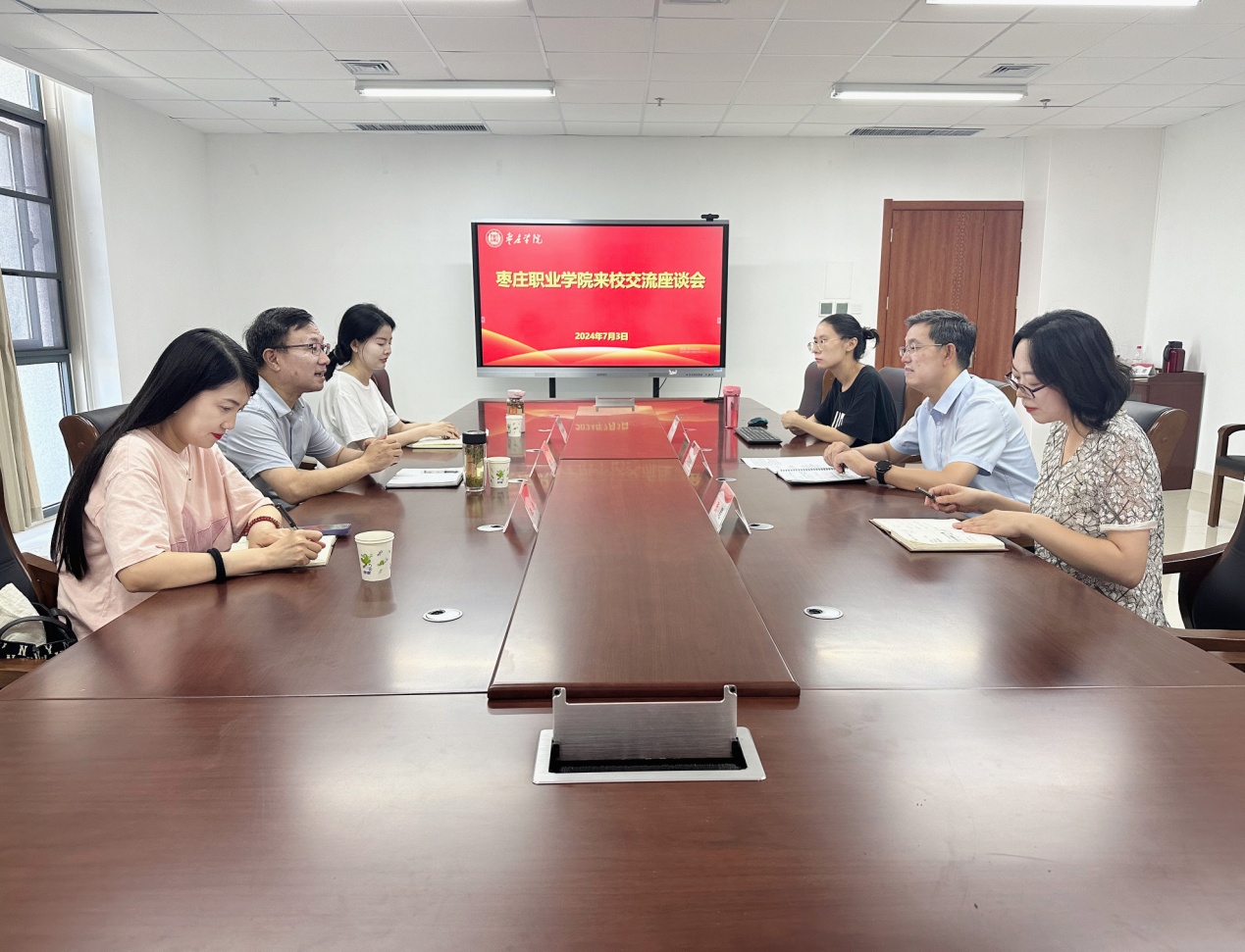 7月3日下午,枣庄职业学院学生工作处处长刘强一行3人来校座谈交流。永利官网学生工作处处长王维忠等3人在明理楼231会议室与刘强一行举行座谈。