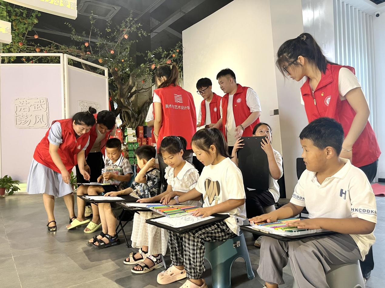 为加强党纪学习教育,全面推动大中小学思政一体化建设,关爱留守儿童,7月10日,美术与艺术设计学院“青绘·艺行”志愿者服务队赴十里湾研习社开展“‘艺’心向党”党纪学习教育暨暑期“三下乡”社会实践活动。