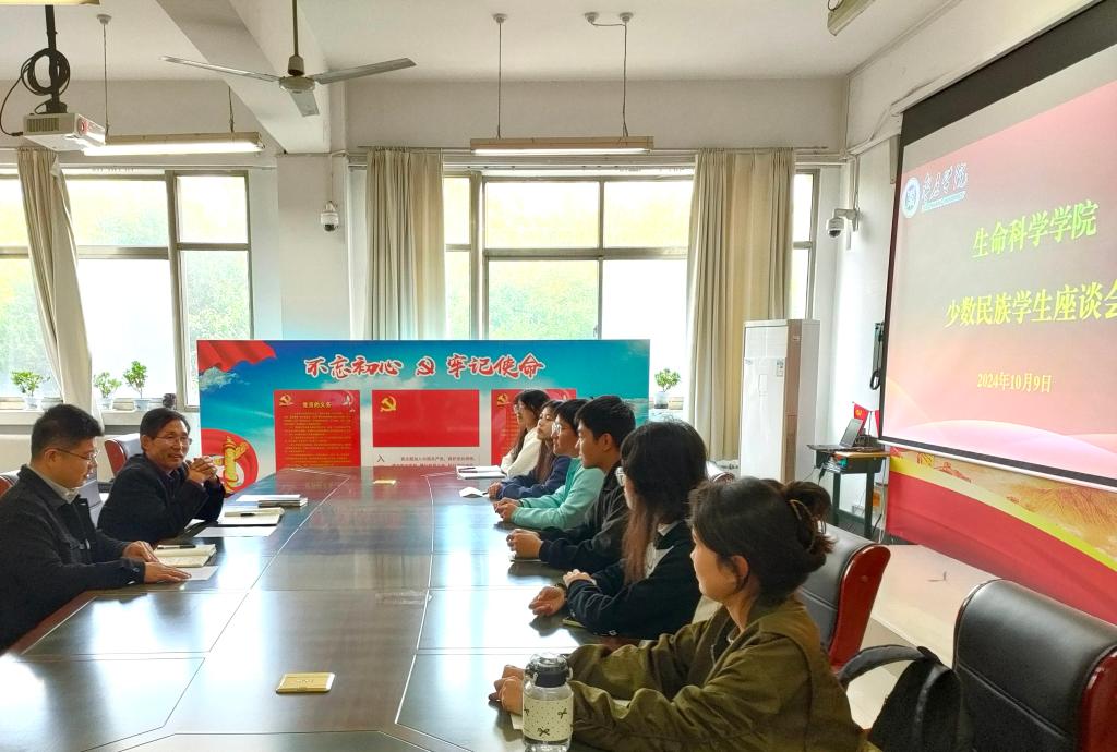 为深入学习贯彻习近平总书记关于铸牢中华民族共同体意识的重要论述,进一步加强爱国主义教育,营造各民族学生团结友爱良好校园氛围。10月9日上午,生命科学学院举办铸牢中华民族共同体意识教育报告会暨少数民族学生座谈会。生命科学学院院长王玉海、辅导员及少数民族学生代表参加活动。