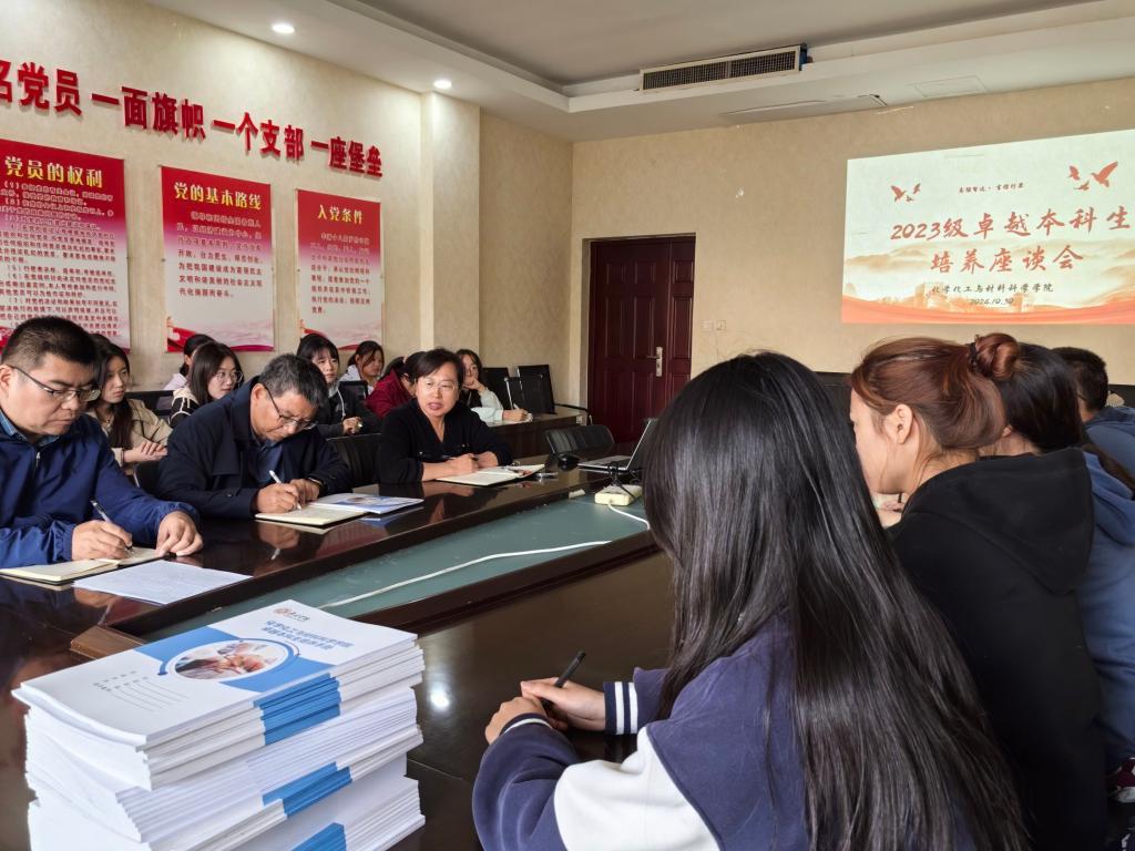 为进一步创新人才培养工作载体,着力提升本科生培养质量,10月30日,化学化工与材料科学学院在市中校区综合楼1220会议室召开2023级“卓越本科生”培养座谈会,学院领导谭胜兵、刘春丽及相关辅导员参加会议,46名2023级卓越本科生培养对象参加座谈。