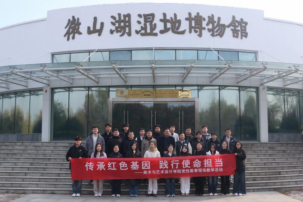 为弘扬伟大建党精神,加强党性修养,11月23日,美术与艺术设计学院赴滕州红荷湿地红色教育基地进行“传承红色基因 践行使命担当”党性教育现场教学活动。学院全体师生党员参加此次活动。
