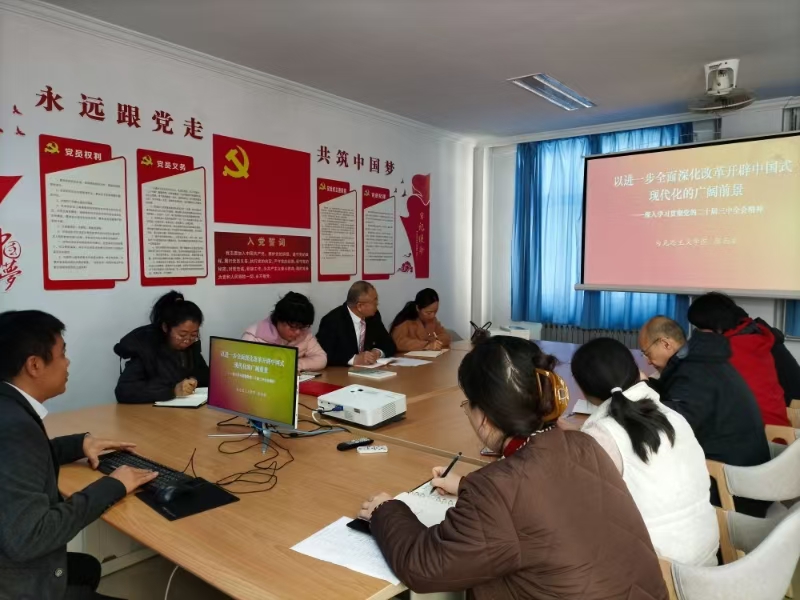 刑西敬博士以《以进一步全面深化改革开辟中国式现代化的广阔前景》为题,围绕从中国的现代化到中国式现代化、中国式现代化的内生特点以及进一步全面深化改革的重大举措等三个方面进行了阐述,加深了大家对中国式现代化的丰富内涵、主要特点和推进措施的认识。党课讲授逻辑严谨、深入浅出,展现出深厚的学术造诣和专业素养,使全体党员受益匪浅。 大家纷纷表示,要以此次党课为契机,进一步认真学习贯彻党的二十届三中全会精神,勠力同心、扎实作为,在各项工作中走在前、挑大梁,以实际行动践行初心使命,推动图书馆事业高质量发展,以建设智能化现代化图书馆为实现学校“两升一创”战略目标作出贡献。