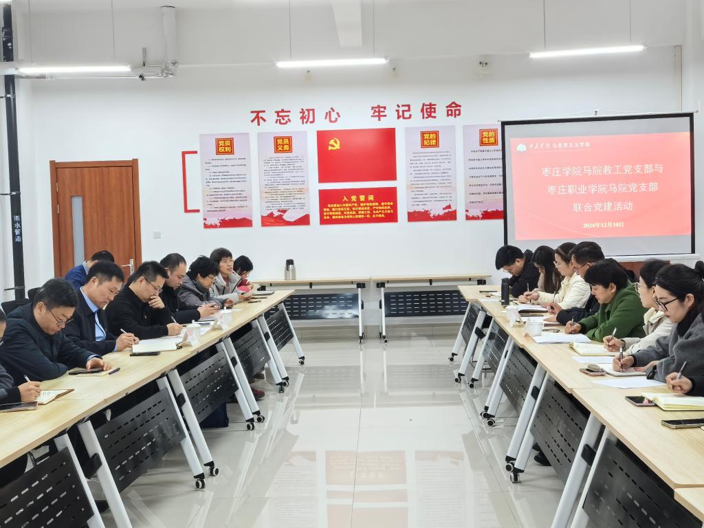 为更好贯彻落实党的二十届三中全会精神,促进马克思主义学院党建与思政课教学相融合,推动思政课建设内涵式发展,更好落实立德树人根本任务,12月10日下午,马克思主义学院教工第二党支部与枣庄职业学院马克思主义学院党支部,以“推动思政课内涵式发展”为主题举行联合党建活动,两个支部40多名党员参加。