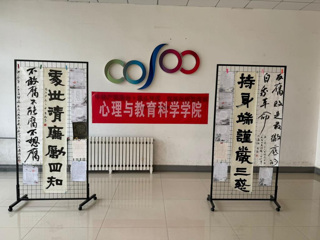 12月12日,心理与教育科学学院举办廉政文化集中宣传教育活动,征集的廉洁主题书法作品在学院一楼进行了集中展出。