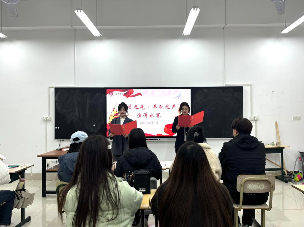 为了弘扬志愿服务精神,彰显青春风采,进一步增强学生的社会责任感,12月12日,美术与艺术设计学院举办“志愿之光·奉献之声”演讲比赛。
