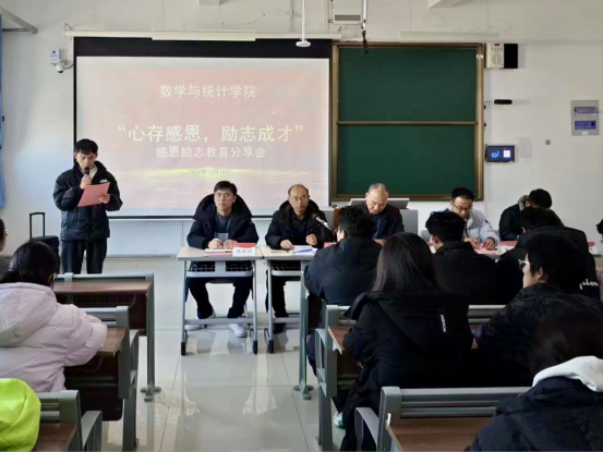 12月18日下午,数学与统计学院在增信楼3513召开“心存感恩、励志成才”为主题的感恩励志教育分享会。学院党委领导、辅导员、班主任和家庭经济困难学生参加了会议。