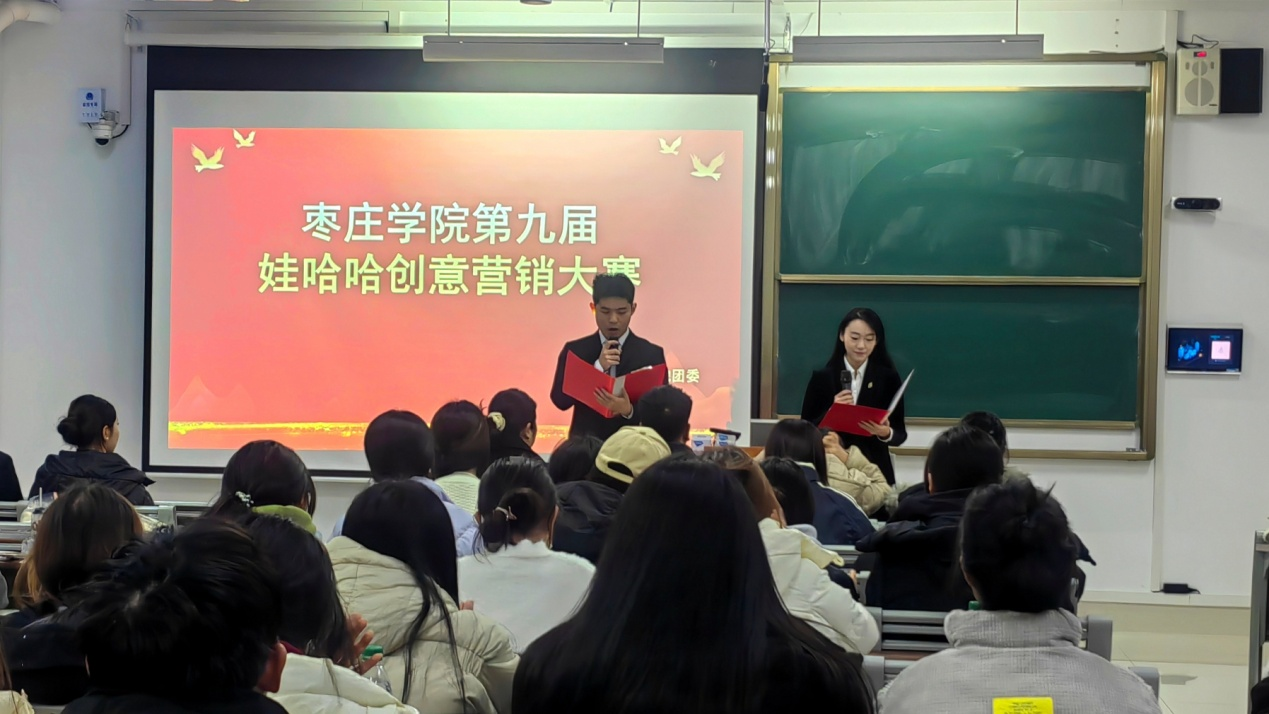 为进一步加强学生实践锻炼,着力培养学生的市场营销、品牌推广等能力,12月20日,经济与管理学院联合娃哈哈集团在薛城校区增信楼 210 教室举行“创意无限 营销未来”第九届娃哈哈创意营销大赛。经过前期产品销售环节比拼,最终有16支队伍进入现场答辩环节。