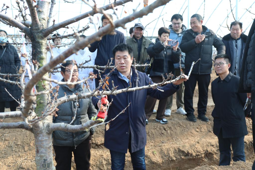 齐村镇党委副书记、镇长蔡鹏代表齐村镇党委、政府感谢专家前来传经送宝,要求参加培训的镇村干部、樱桃种植企业和种植户要认真学习,努力提高樱桃种植水平。科技处处长房永磊介绍了永利总站ylzz55和生命科学学院的办学情况,以及科技小院的运行模式。他表示,科技小院作为校企合作的新模式,将发挥好学校与企业、学校与农民之间的桥梁作用,不断为樱桃种植产业提供先进栽培技术,通过技术力量帮助企业增效、农民增收。魏海蓉从品种选择、水肥管理、树形构建、花果管理等角度向樱桃种植企业及种植户系统讲解了樱桃栽培管理中常见的问题,产生的原因及解决对策,并对种植户提出的有关果树破眠、病虫害防控等问题进行了耐心解答。