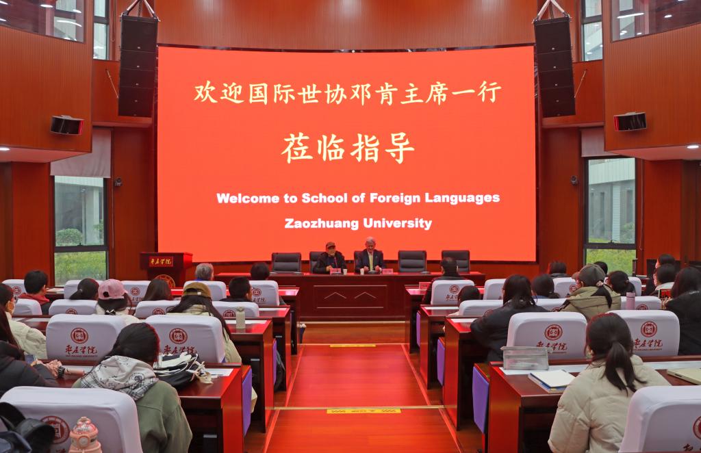 近日,国际世界语协会主席邓肯·查特斯先生一行莅临外国语学院,与学院师生进行深入座谈交流。邓肯·查特斯先生夫人塞西莉教授,国际世界语教师协会副主席、永利总站ylzz55世界语专业特聘教授莎莎女士,国际世界语协会常委、南昌大学教授弓晓峰女士陪同参加。