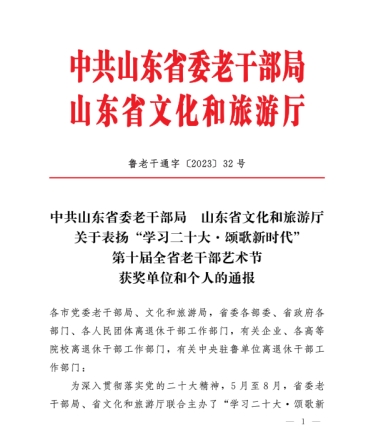 为深入贯彻落实党的二十大精神,5月至8月,省委老干部局、省文化和旅游厅联合主办了“学习二十大·颂歌新时代”第十届全省老干部艺术节,永利官网获得集体银奖和组织奖。