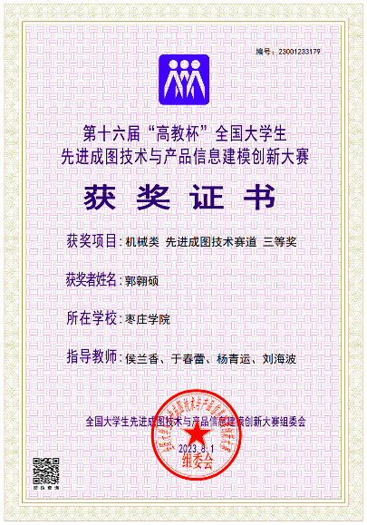 近日,第十六届全国大学生先进成图技术与产品信息建模创新大赛在重庆交通大学科学城赛区顺利落下帷幕。经过激烈角逐,永利官网机电工程学院代表队喜获机械类团体三等奖,郭翱硕同学在本次比赛中获得机械类个人全能三等奖。