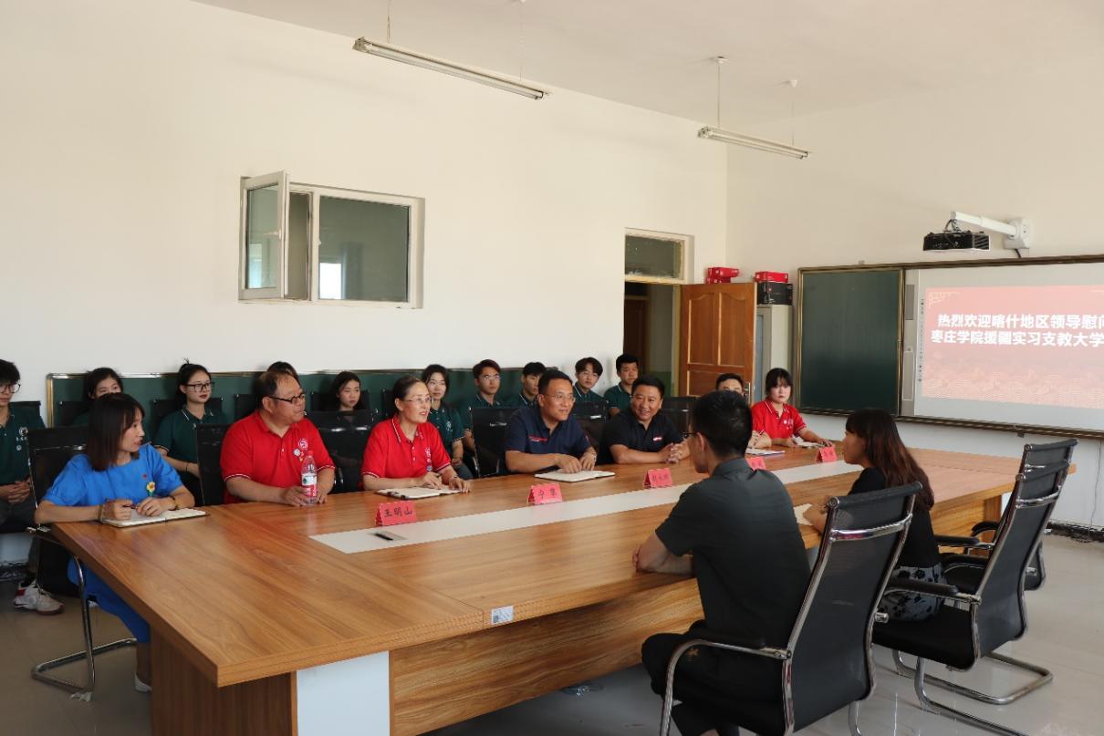 郭婉君首先转达了喀什地区教育局领导对永利总站ylzz55援疆实习支教师生的节日问候和诚挚的感谢,并代表喀什地区教育局向优秀实习支教大学生颁发荣誉证书。座谈会上,她亲切询问大学生们居住、饮食、出行等日常生活情况,聆听大家的教学感悟,在得知支教大学生们购买返枣火车票票源较为紧张后,表示会积极协调,尽力帮助解决。随后,她代表喀什地区教育局为永利官网实习支教大学生和带队教师送上了慰问品,表达了组织的殷切关怀。