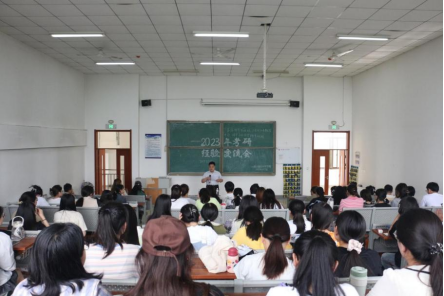 党总支书记宋明峰在会上强调,作为师范生,同学们要以更高的视野、更大的格局看待自己的专业和职业,明白自己的使命和担当。通过升学深造,提升自己的能力素养,希望同学们抓住考研的关键窗口期,努力学习,提升自我,将来为教育事业做出更大贡献。学院也将坚持把“我为群众办实事”实践活动作为检验主题教育学习成效的重要载体,不断提高服务实效,为同学们考研保驾护航。院长傅金兰鼓励师同学们把握好“大学”这个成长关键期,让青春有迹,让奋斗有痕,用努力和汗水书写自己的传奇。