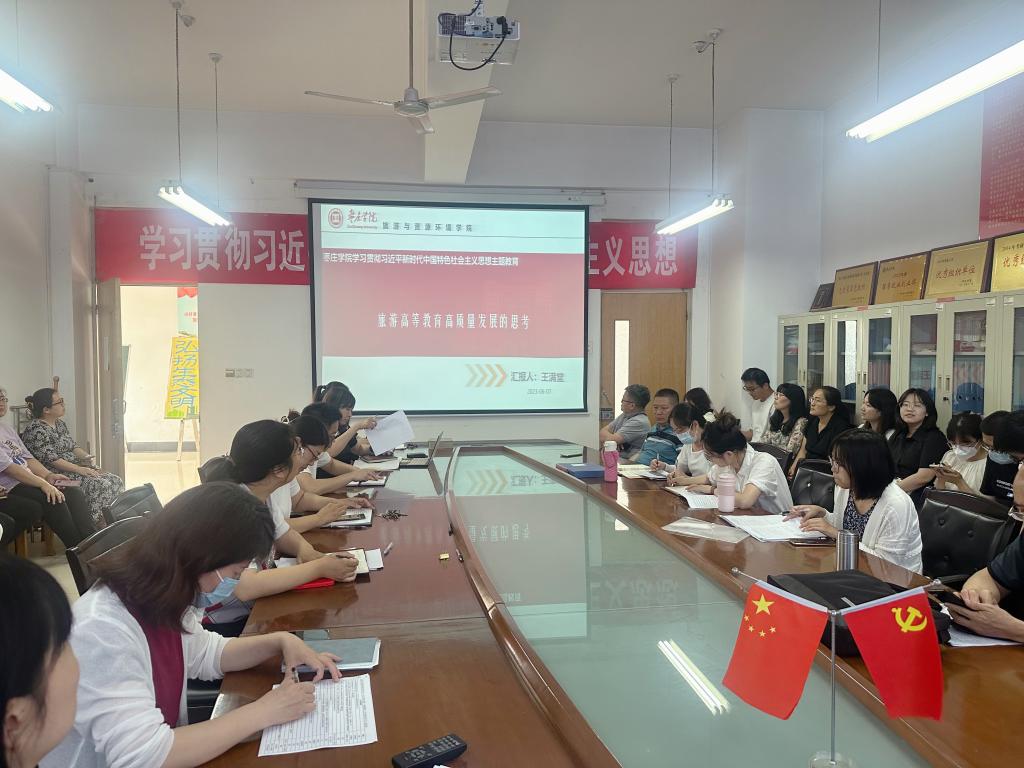 为进一步推动主题教育走深走实,6月7日下午,旅游与资源环境学院院长王满堂在理工楼2514会议室以《旅游高等教育高质量发展的思考》为题作主题教育专题报告,学院全体教职工参会。